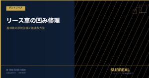こうした場合は板金塗装の方が適切です。SURREALでは、デントリペアが最適でない場合は正直にそうお伝えします。無理に施工して仕上がりが悪くなるくらいなら、最初から適切な方法をご提案した方がお客様のためだからです。